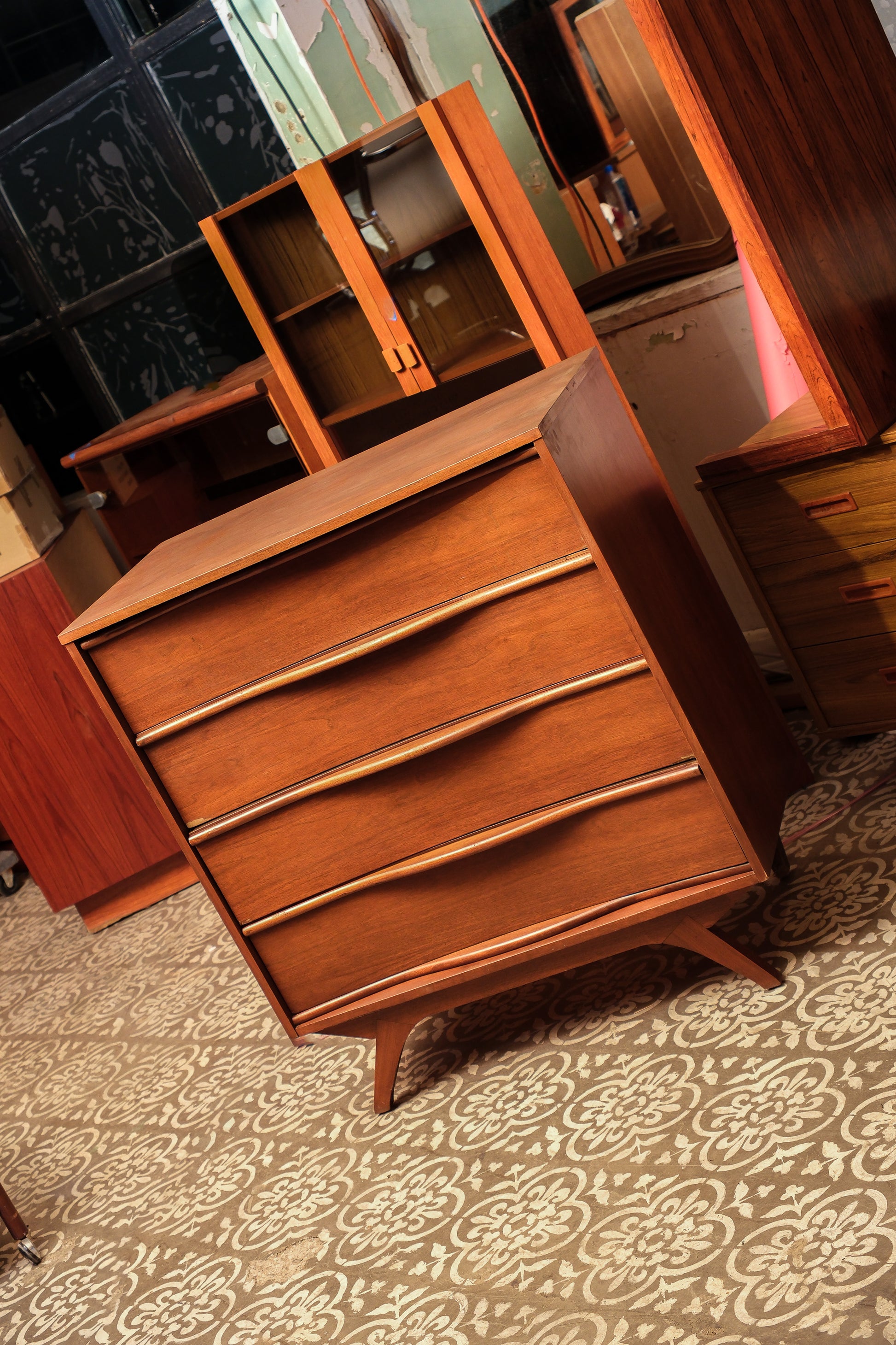 MCM Dark Walnut Tallboy Dresser